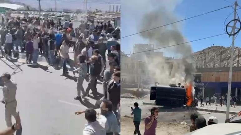 Leh: Angry protesters clashed with the police in Leh city of Ladakh this morning, pelting stones at officials and even burning down a police vehicle, in the first such instance of violence during the ongoing statehood movement.
