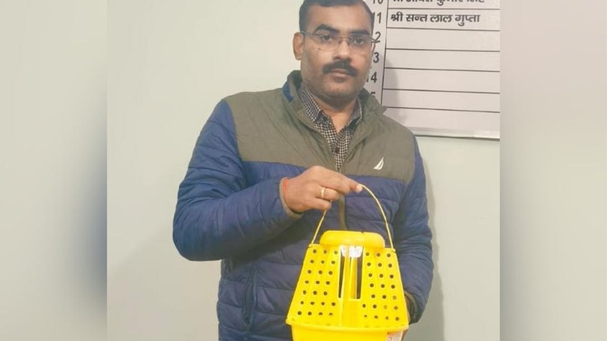 सोलर लाइट दिखाते जिला कृषि अधिकारी संत लाल गुप्ता।