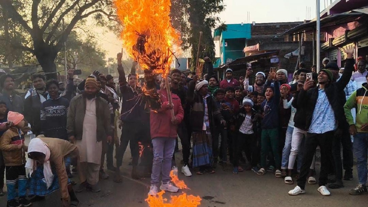 मंत्री इरफान अंसारी का पुतला दहन करते मुस्लिम समाज के लोग। (फोटो जागरण)