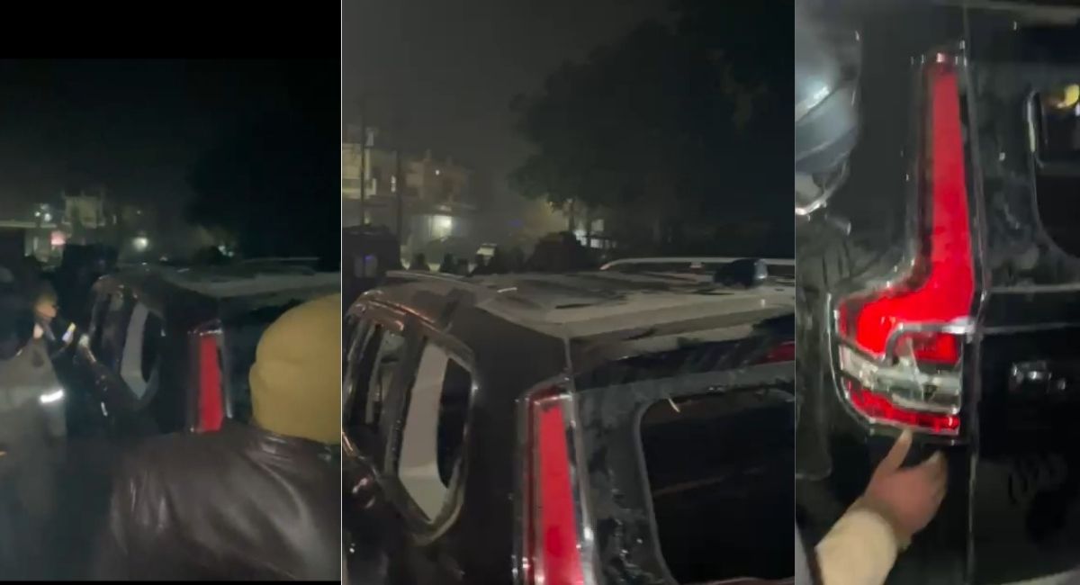दुर्घटना के बाद मौके पर खड़ी स्कॉर्पियो। वीडियो ग्रैब