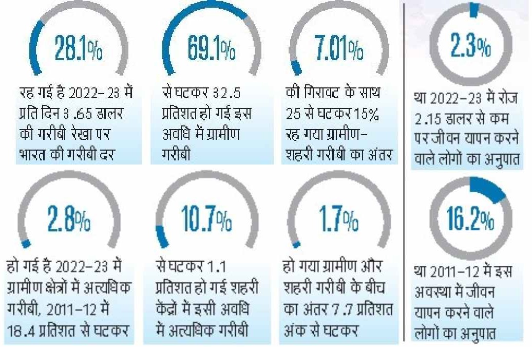 विश्व बैंक की रिपोर्ट में पाया गया है कि अत्यधिक गरीबी में आई तीव्र कमी व्यापक स्तर पर हुई है, जिसमें ग्रामीण और शहरी दोनों क्षेत्र शामिल हैं। यह उपलब्धि भारत सरकार की समावेशी विकास के प्रति प्रतिबद्धता का प्रमाण है ।