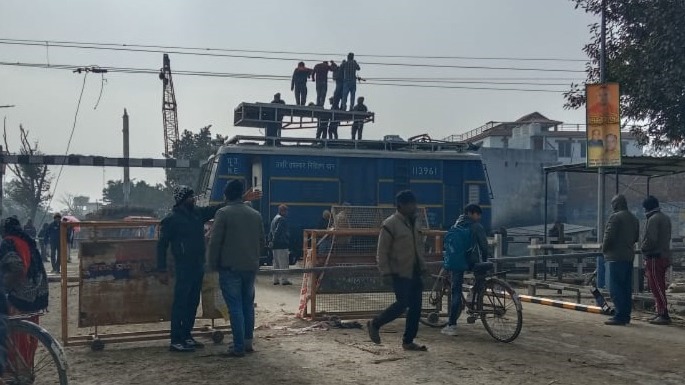 बलरामपुर में ट्रैक्टर-ट्रॉली ने तोड़ा रेलवे फाटक, हाईटेंशन तार टूटने से ठप हुआ रेल संचालन