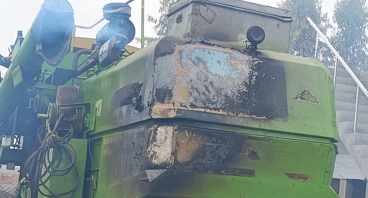 किसान की जली हुई कंबाइन व सामान।