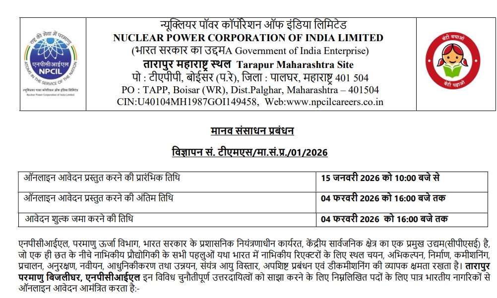 NPCIL Recruitment 2026: एनपीसीआईएल में विभिन्न पदों पर भर्ती का एलान, 10th से लेकर ग्रेजुएट आवेदन के लिए पात्र