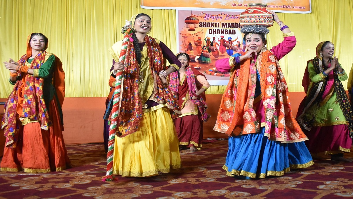 लोहड़ी पर्व पर धनबाद के शक्ति मंदिर परिसर में पारंपरिक नृत्य की प्रस्तुति देते कलाकार। (फोटो- अमित सिन्हा)