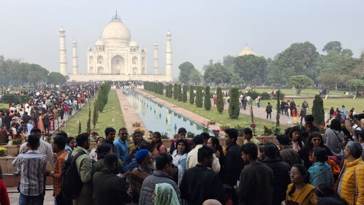 Agra Weather: ताजमहल पर सैलानी। फाइल