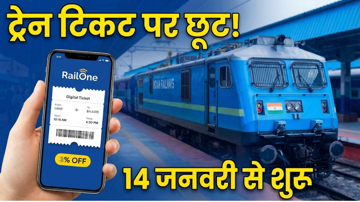 नई दिल्ली। ट्रेन की टिकट करने पर अब आप डिस्काउंट का फायदा उठा सकते हैं। रेलवे ने 14 जनवरी से ट्रेन टिकट पर 3 फीसदी की छूट (Railway Ticket Discount) देने की बात कही है। यह फायदा अनारक्षित टिकटों की RailOne ऐप से पेमेंट करने पर मिलेगा। पहले यह सुविधा सिर्फ R-वॉलेट के माध्यम से भुगतान करने पर ही मिलती थी, लेकिन अब आप किसी भी प्लेटफॉर्म से ये सुविधा ले सकते हैं। इसके जरिए ट्रेन टिकट बुकिंग पर 3 फीसदी तक कैशबैक का फायदा उठा सकते हैं।