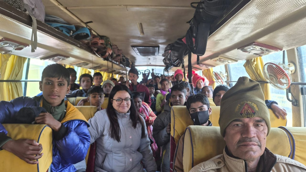 बस में सवार बच्‍चे