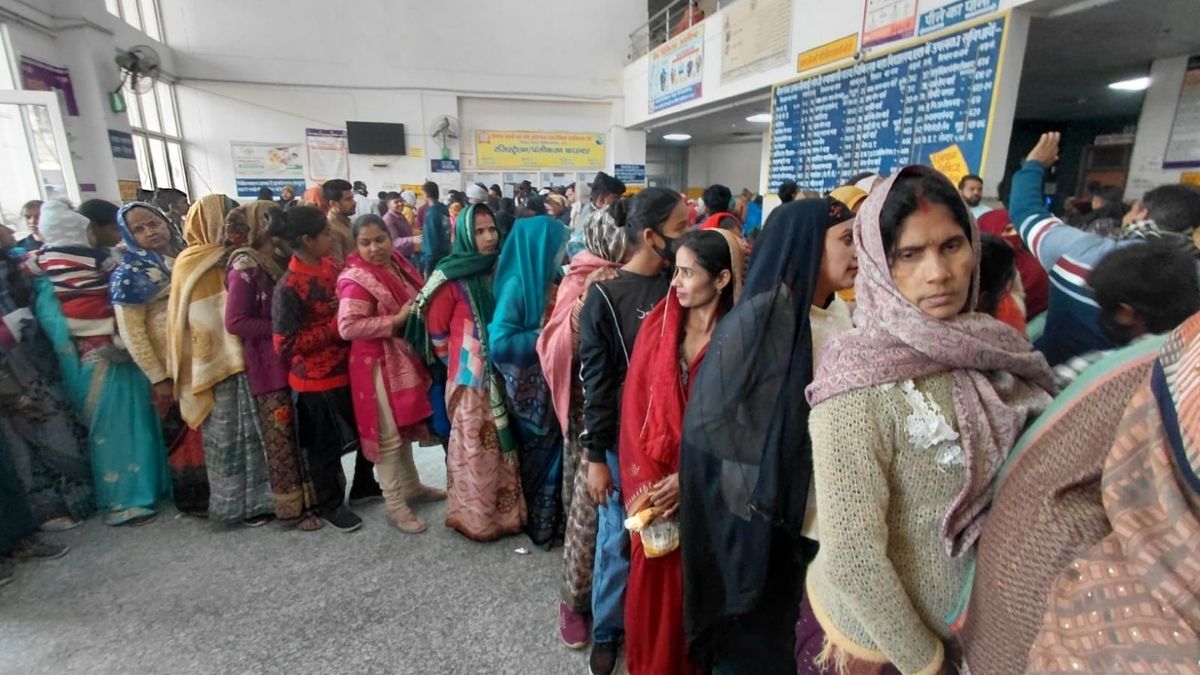 एटा के अस्पताल में बुधवार को लगी भीड़।