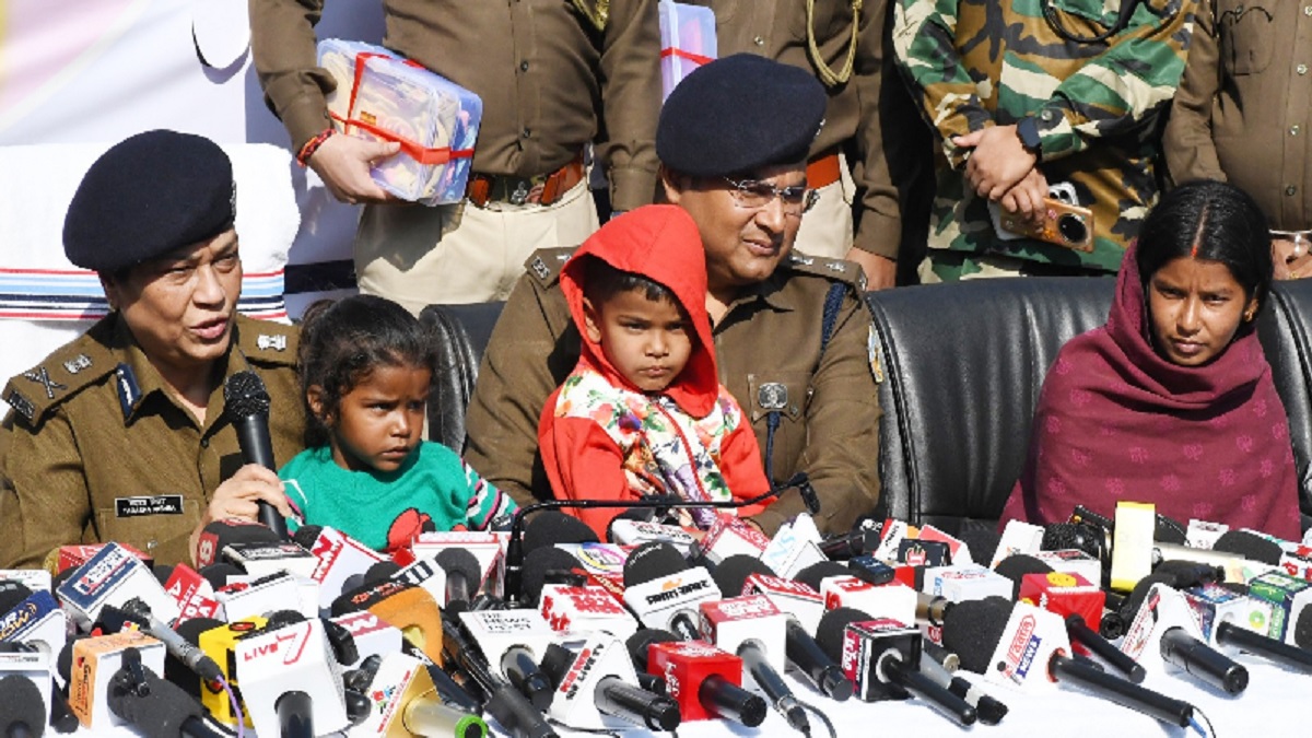 डीजीपी तदाशा मिश्रा ने झारखंड पुलिस मुख्यालय में अपहर्ताओं के चंगुल से मुक्त बच्ची अंशिका को गोद में उठा लिया। उन्होंने पूरी पुलिस टीम को बधाई दी। प्रेस कान्फ्रेंस में ही अंश व अंशिका ने अपना-अपना नाम भी बताया।