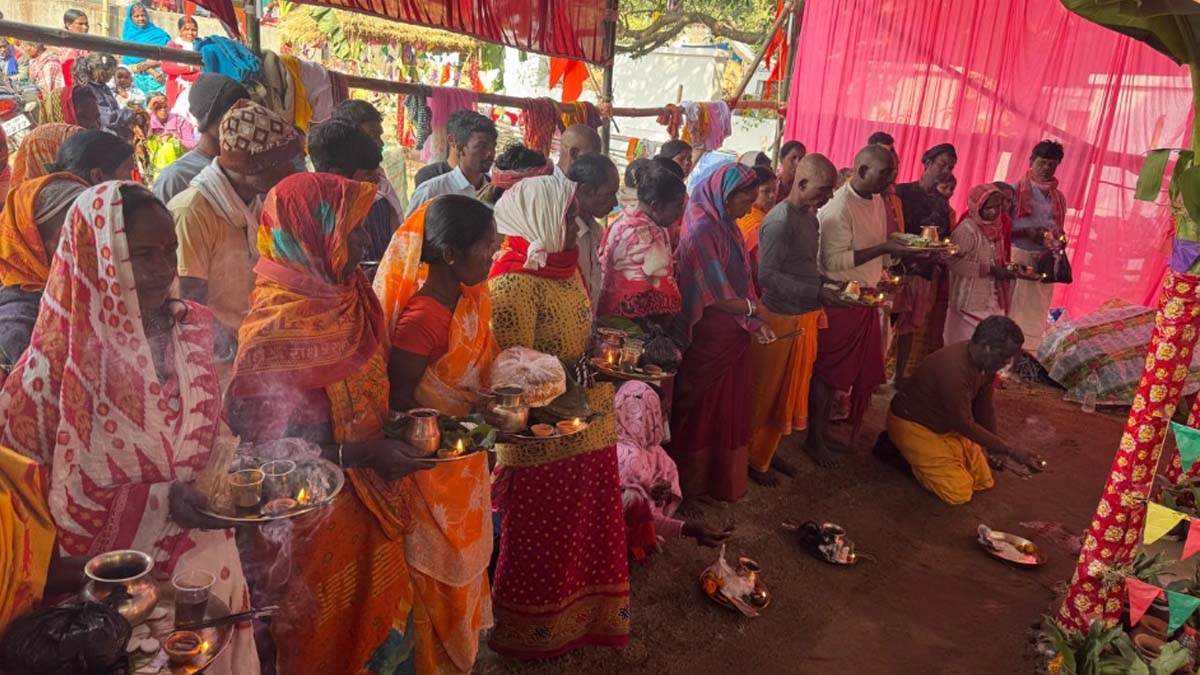 साथ ही संत-महात्माओं और समाज के 500 बलिदानियों के नाम पिंडदान किया गया। इस क्रम में सभी ने सनातन समाज की एकता और संस्कृति बनाए रखने का संकल्प लिया। सफा होड़ समाज की गुरुमाता रेखा हेंब्रम ने कहा कि यह महाकुंभ संताल समाज की सनातन जड़ों से जुड़ने और सामाजिक एकता को मजबूत करने का सशक्त माध्यम बना है। पिछले चार दिनों में एक लाख से अधिक श्रद्धालुओं ने पापहरणी घाट पर स्नान कर आध्यात्मिक ऊर्जा का अनुभव किया। दोपहर में भगवान मधुसूदन की भव्य शोभायात्रा निकली। सबसे पहले पापहरणी सरोवर में स्नान कर सनातन आश्रम के सामने महामांझी थान में अपने गुरुओं, पूर्वजों, महापुरुषों व बलिदानियों के लिए संतालियों ने पिंडदान किया। इस क्रम में कुछ लोगों ने मुंडन भी करवाया। हाथ में जल, हल्दी, दातून, मिट्टी, फूल, दीप आदि पूजा सामग्री लेकर विधि-विधान पूर्वक पितृ पूजा की।