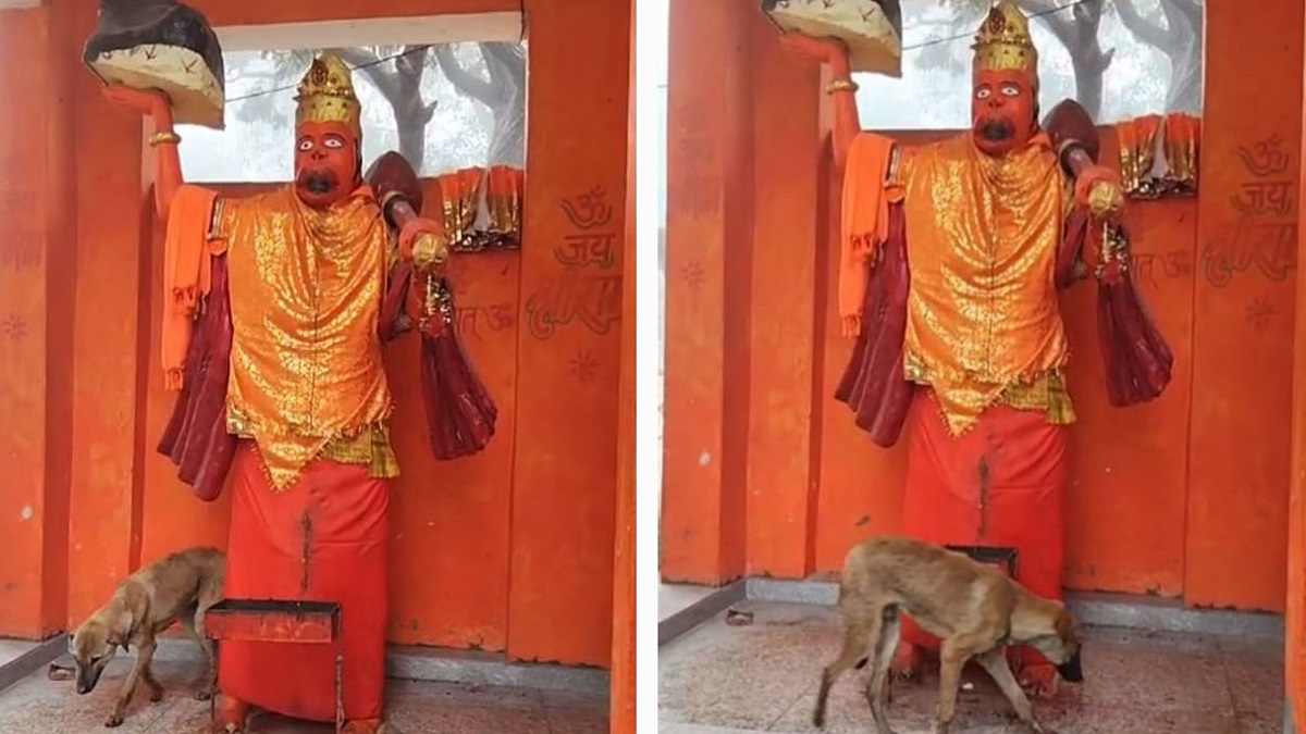 बिजनौर के गांव नंदपुर स्थित हनुमान जी की मूर्ति की परिक्रमा करता कुत्ता