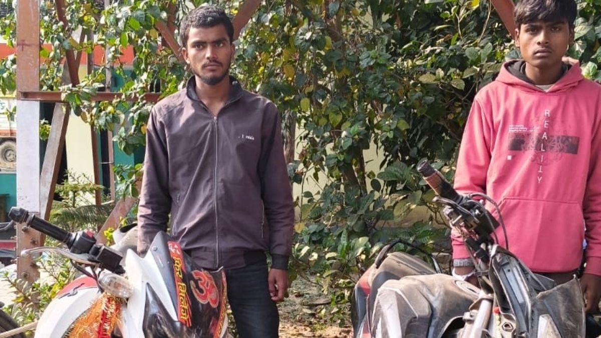 बिना नंबर की चोरी की बाइक के साथ दो कुख्यात गिरफ्तार