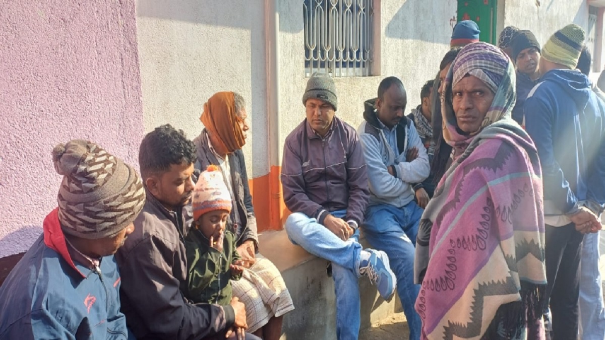 घटना की सूचना पाकर पीड़ित परिवार के घर पर जुटे लोग।