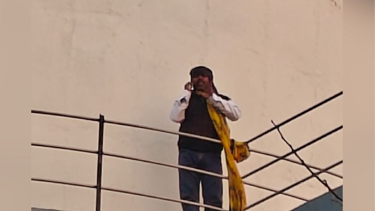 गले में साड़ी का फंदा लगाकर पानी की टंकी पर चढ़ा अवधेश।