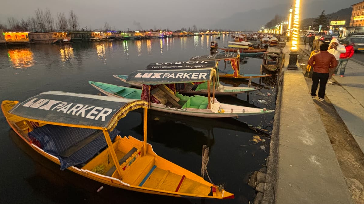 डल लेक में खड़ी शिकारा (फोटो- साहिल मीर)