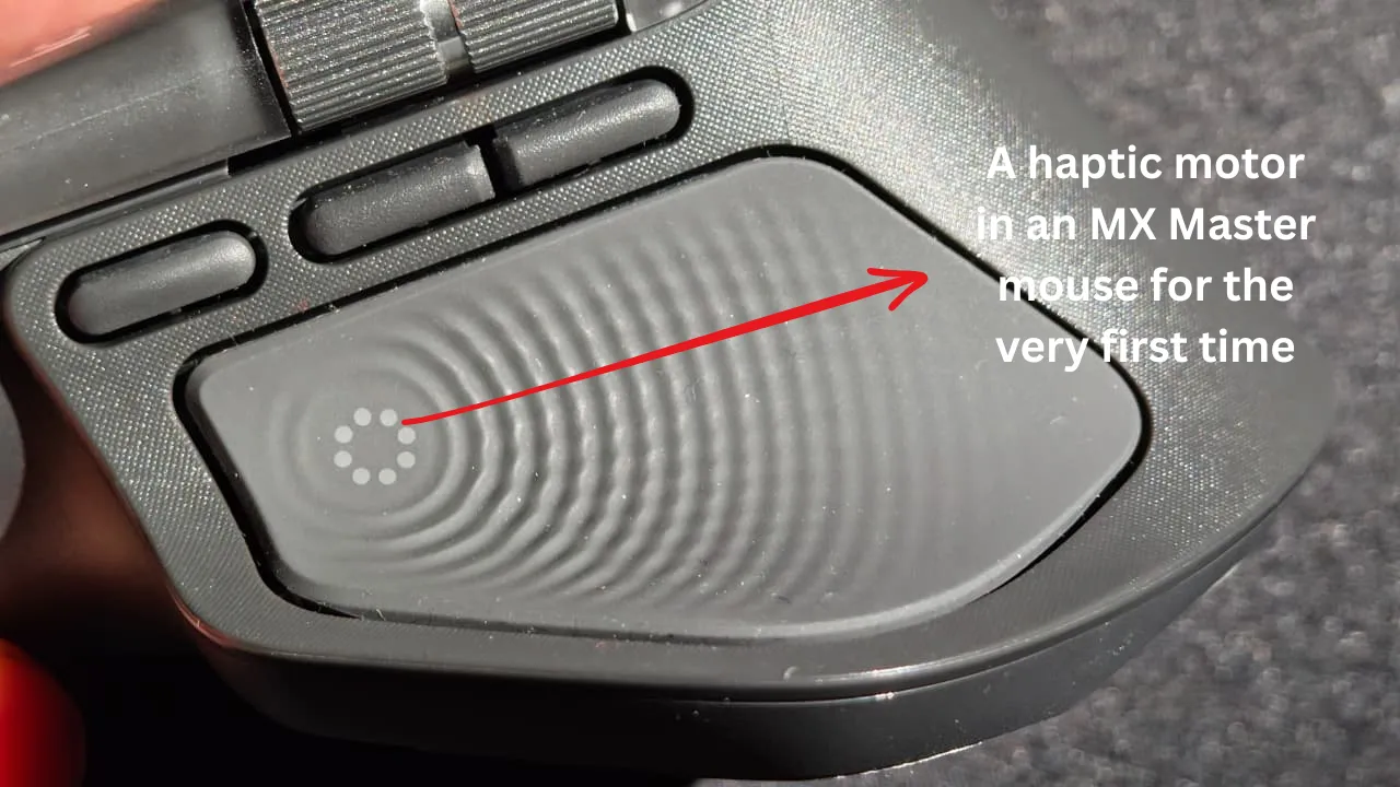 The headline addition is haptic feedback, integrated into nearly every function of the mouse. The haptic motor is right where the tip of the right-hand thumb goes. Whether scrolling through documents, selecting text, or editing video timelines, the subtle vibrations add a tactile dimension. Now, whether users will find this useful or not is subjective. Some might argue this is vanity, considering this is simply a work mouse. Some might say this adds a layer of utility, especially those who use software like Premiere Pro.