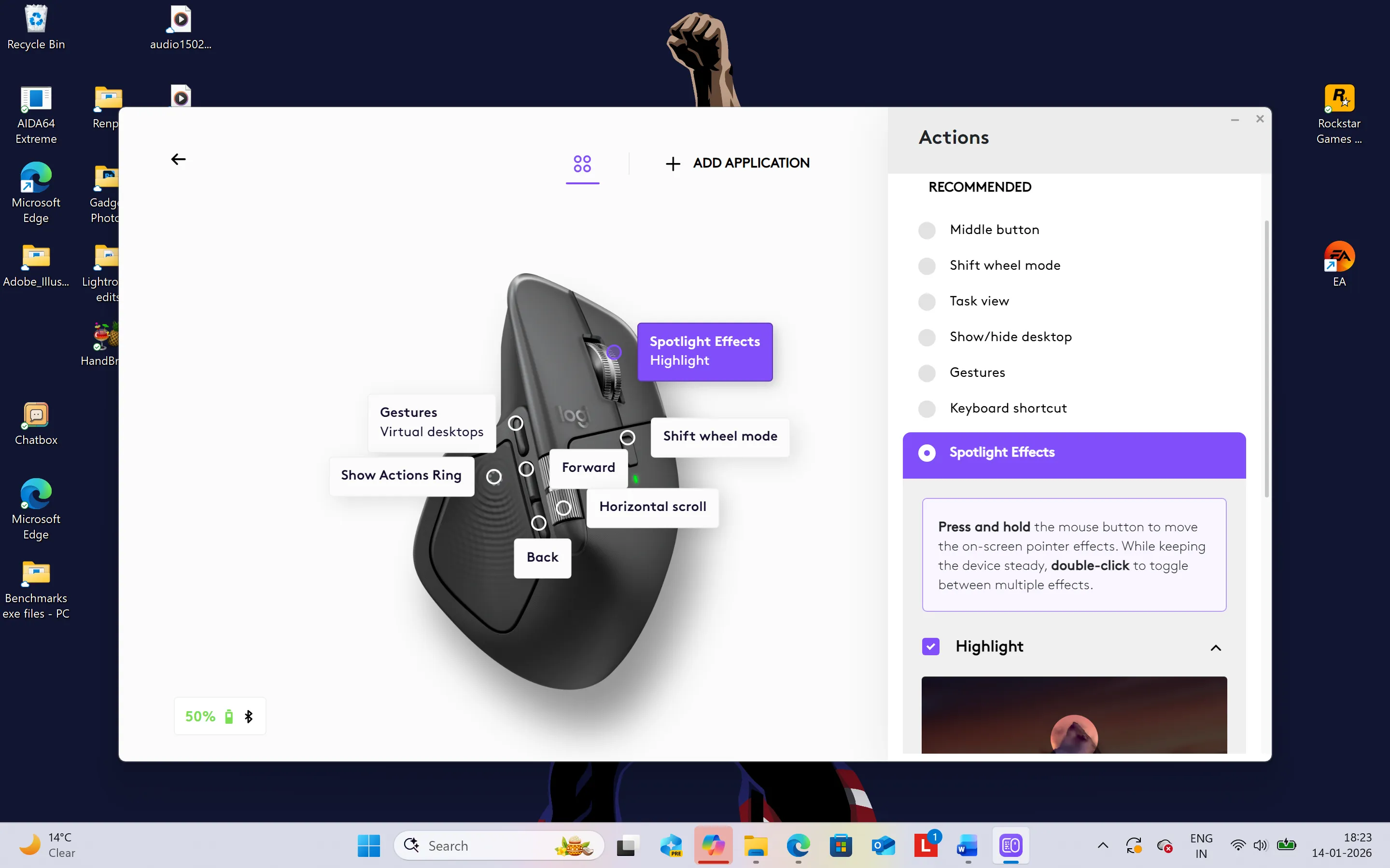 This feature allows users to trigger system-level shortcuts with directional movements. For instance, pressing the button and sliding the mouse down hides the desktop, while sliding up opens the start menu. It’s a small addition that quickly becomes second nature, streamlining everyday workflows.