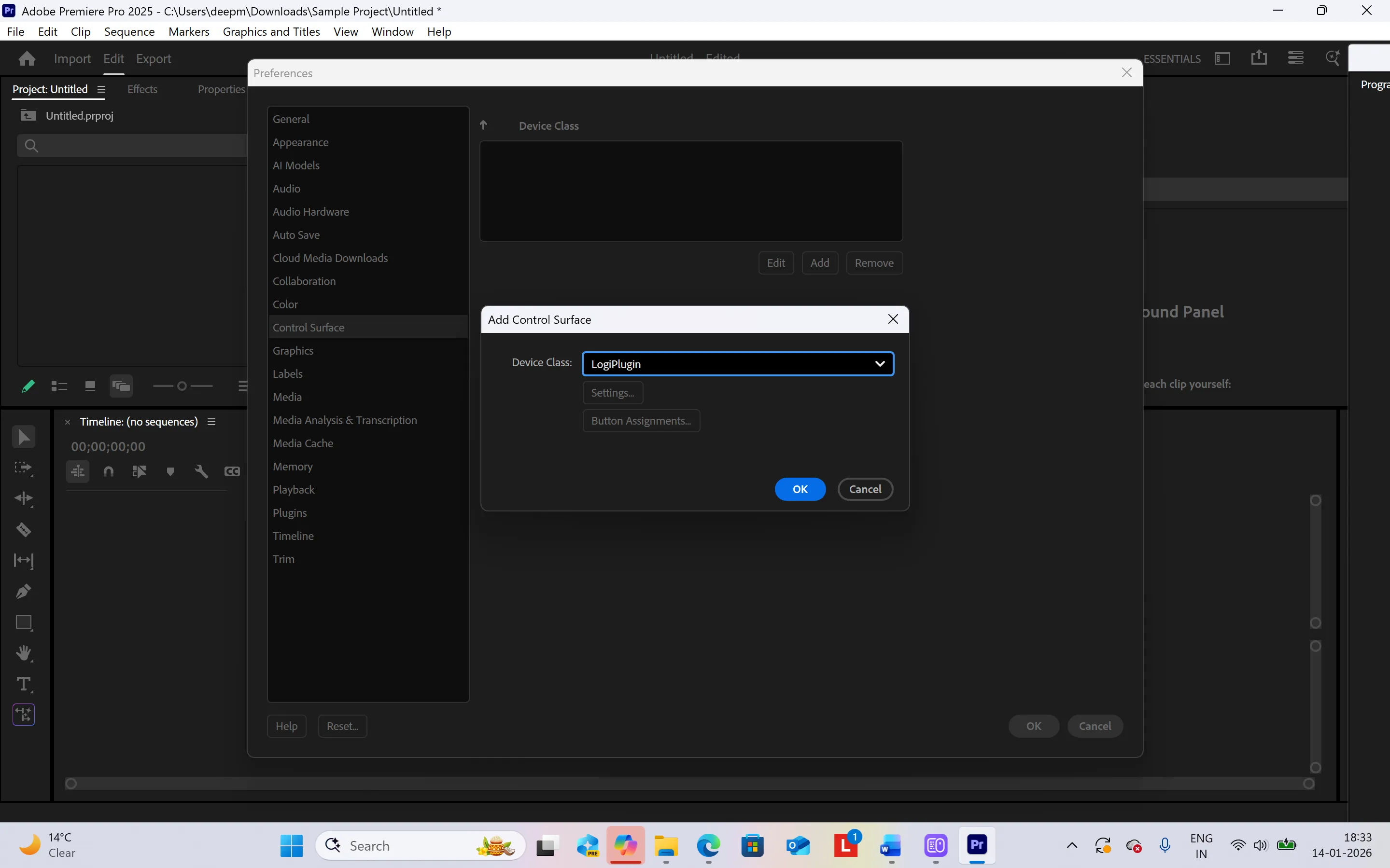 This is me connecting the Logitech plugin to Adobe Premiere Pro. It is a fairly simpl;e process and only takes a few steps.