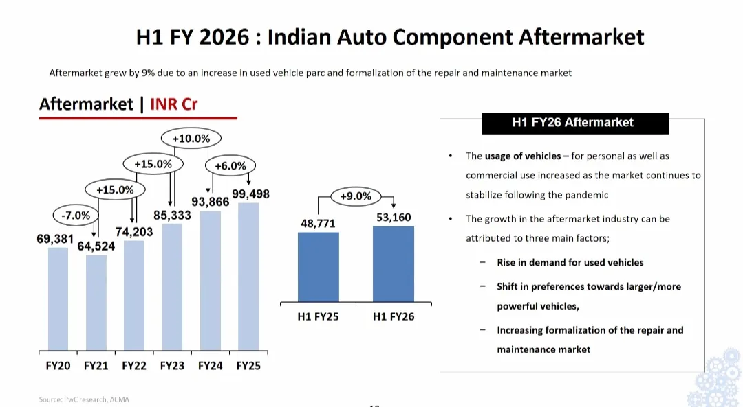 [color=hsl(0,0%,0%)]Supplies to vehicle manufacturers remained the biggest growth driver. Sales to OEMs rose 7.3 per cent to Rs 3.04 lakh crore, supported mainly by demand from passenger vehicles and light commercial vehicles. This reflects relatively stable production levels in these segments during the period.