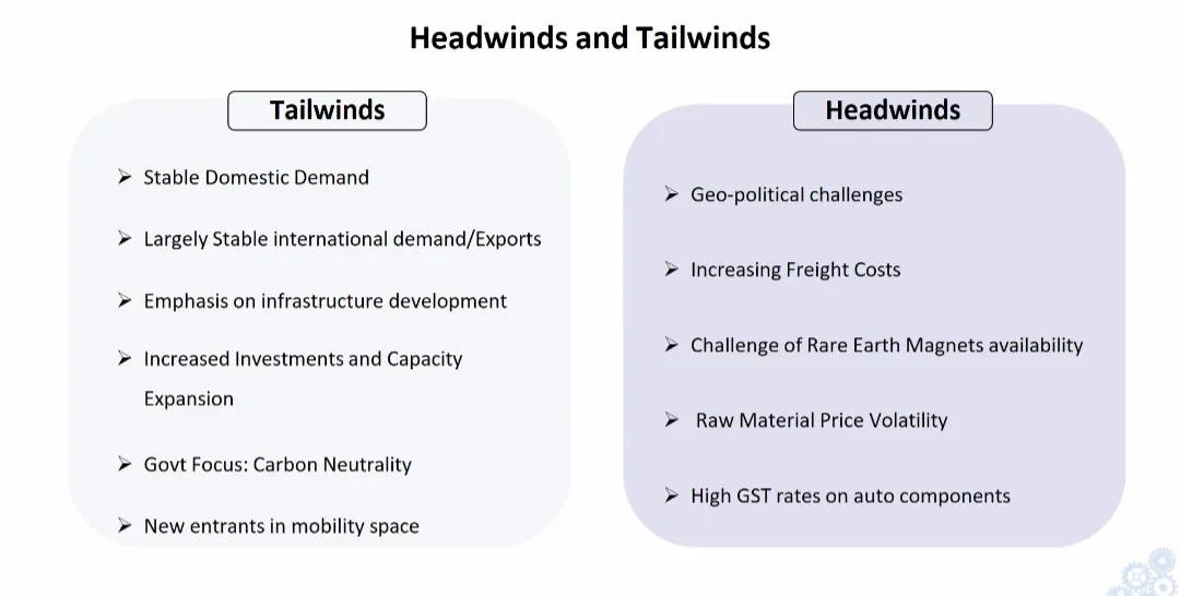 [color=hsl(0,0%,0%)]At the same time, the operating environment continues to be shaped by geopolitical uncertainties, supply-chain challenges and cost pressures. Availability of critical materials, including rare-earth magnets, and the need to strengthen supply-chain resilience remain key concerns for sustaining long-term growth.
