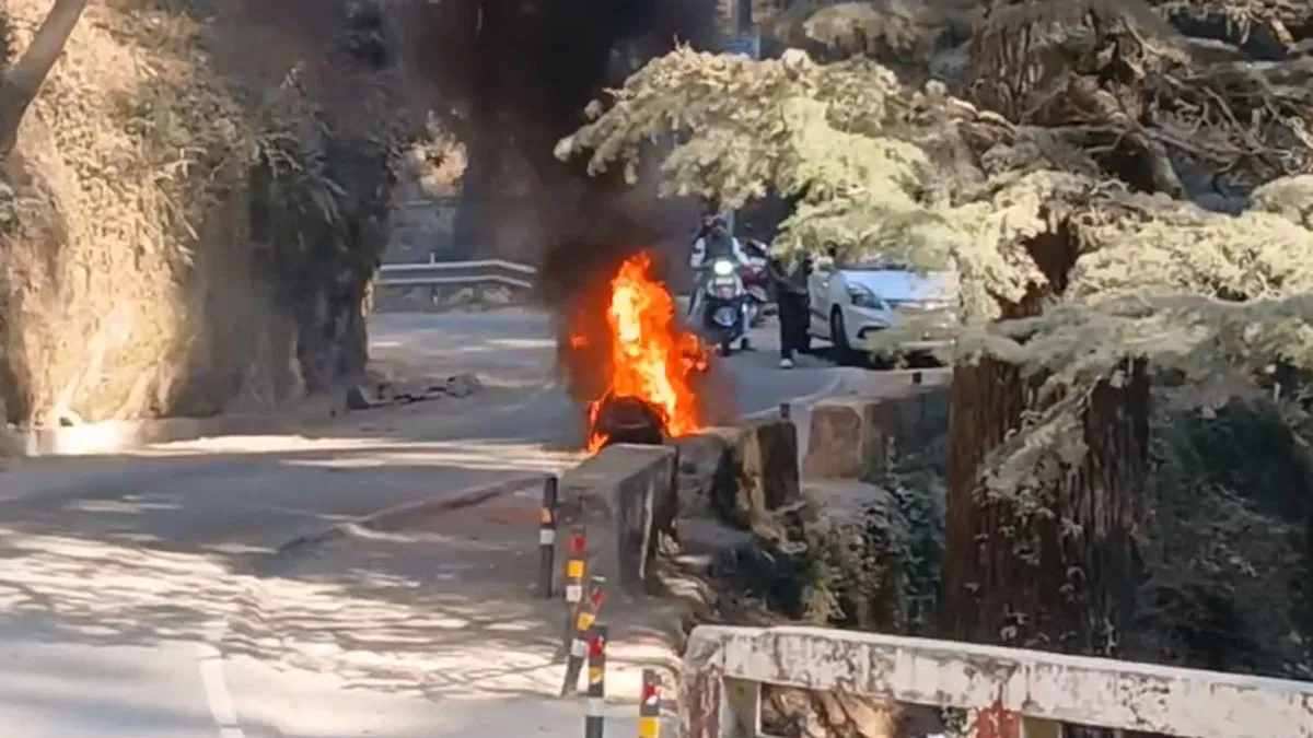 जासं, अल्मोड़ा। विश्व प्रसिद्ध जागेश्वर धाम के समीप सड़क मार्ग पर उस समय अफरा-तफरी मच गई, जब सड़क किनारे खड़ी एक स्कूटी में अचानक भीषण आग लग गई। देखते ही देखते स्कूटी आग का गोला बन गई और क्षेत्र में धुएं का गुबार छा गया। घटना के समय आसपास मौजूद लोगों में हड़कंप मच गया।