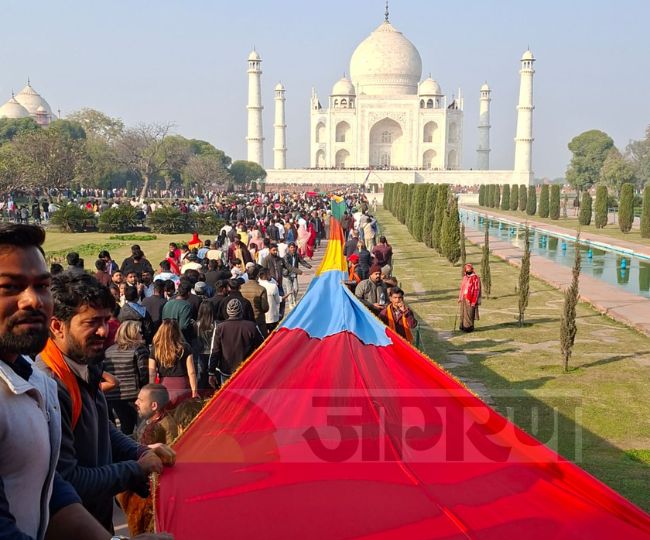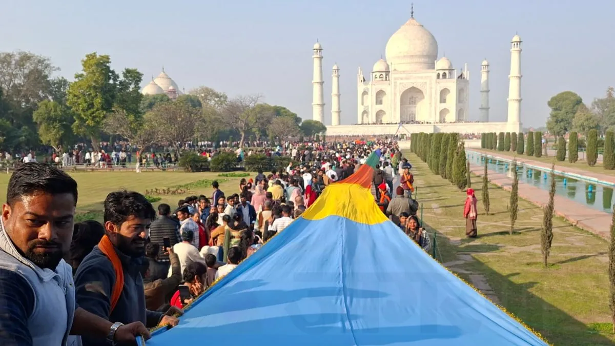 Taj Mahal Urs: 1720 मीटर लंबी सतरंगी चादर चढ़ाई, ताजमहल फ्री देखने को उमड़े पर्यटक