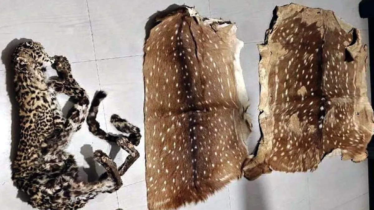जब छापामारी की कार्रवाई की गई तो एक बैग में खरीद फरोख्त के लिए रखे गए चितल एक प्रकार की हरिण की दो खाल मिली। जिसमें से एक की लंबाई 104 सेंटीमीटर और चौड़ाई 96 सेंटीमीटर थी। फाण्ट साईड का पैर का खाल 120 से.मी. और बैक साईड लेग का खाल 125 सेंटीमीटर पाया गया।