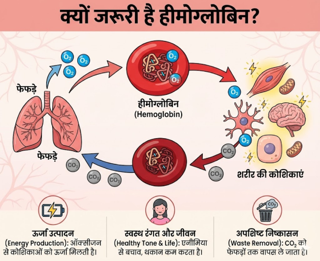 लाइफस्टाइल डेस्क, नई दिल्ली। हीमोग्लोबिन हमारे शरीर का एक बेहद अहम प्रोटीन है, जो फेफड़ों से ऑक्सीजन लेकर शरीर के हर हिस्से तक पहुंचाता है। अगर इसकी कमी हो जाए तो शरीर में खून की कमी (एनीमिया), कमजोरी, चक्कर आना, थकान और इम्युनिटी कमजोर होने जैसी समस्याएं पैदा हो सकती हैं।