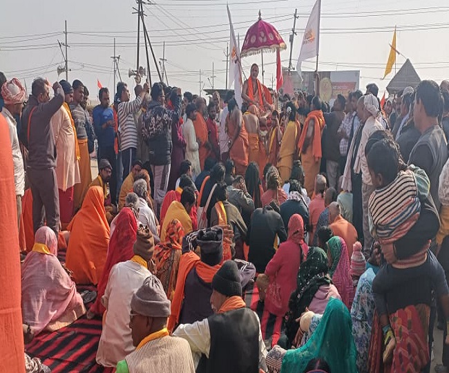 VIDEO : संगम स्नान को जा रहे अविमुक्तेश्वरानंद की शोभा यात्रा पुलिस ने रोकी, झड़प के बाद शिष्य हिरासत में, धरने पर बैठे स्वामी