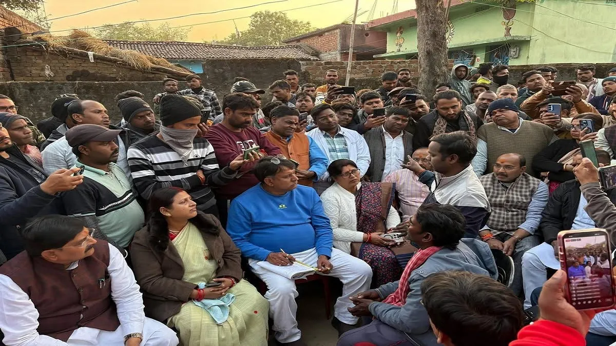 लालगढ़ गांव में पीड़ित परिवारों से घटना की जानकारी लेती भाजपा की जांच कमेटी।