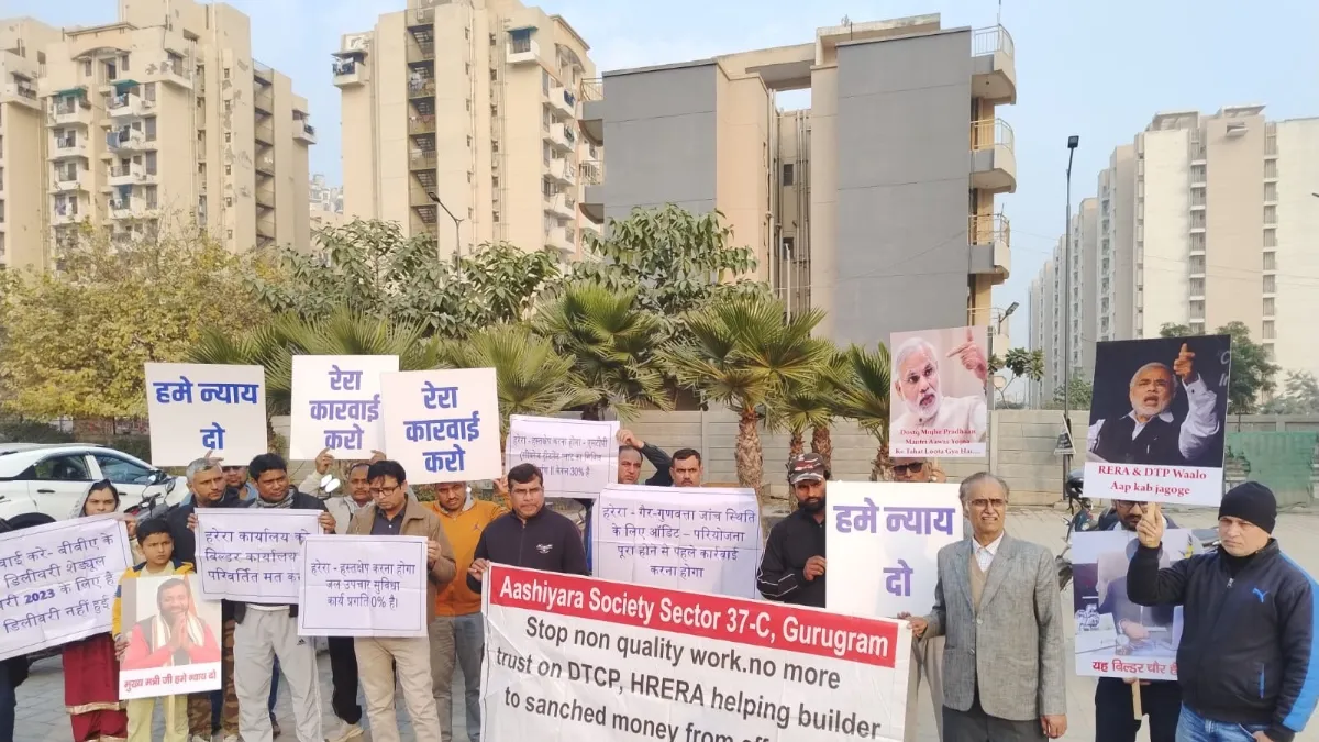 गुरुग्राम में अफोर्डेबल हाउसिंग प्रोजेक्ट आशियारा में देरी से भड़के खरीदार, प्रदर्शन कर उठाई न्याय की मांग