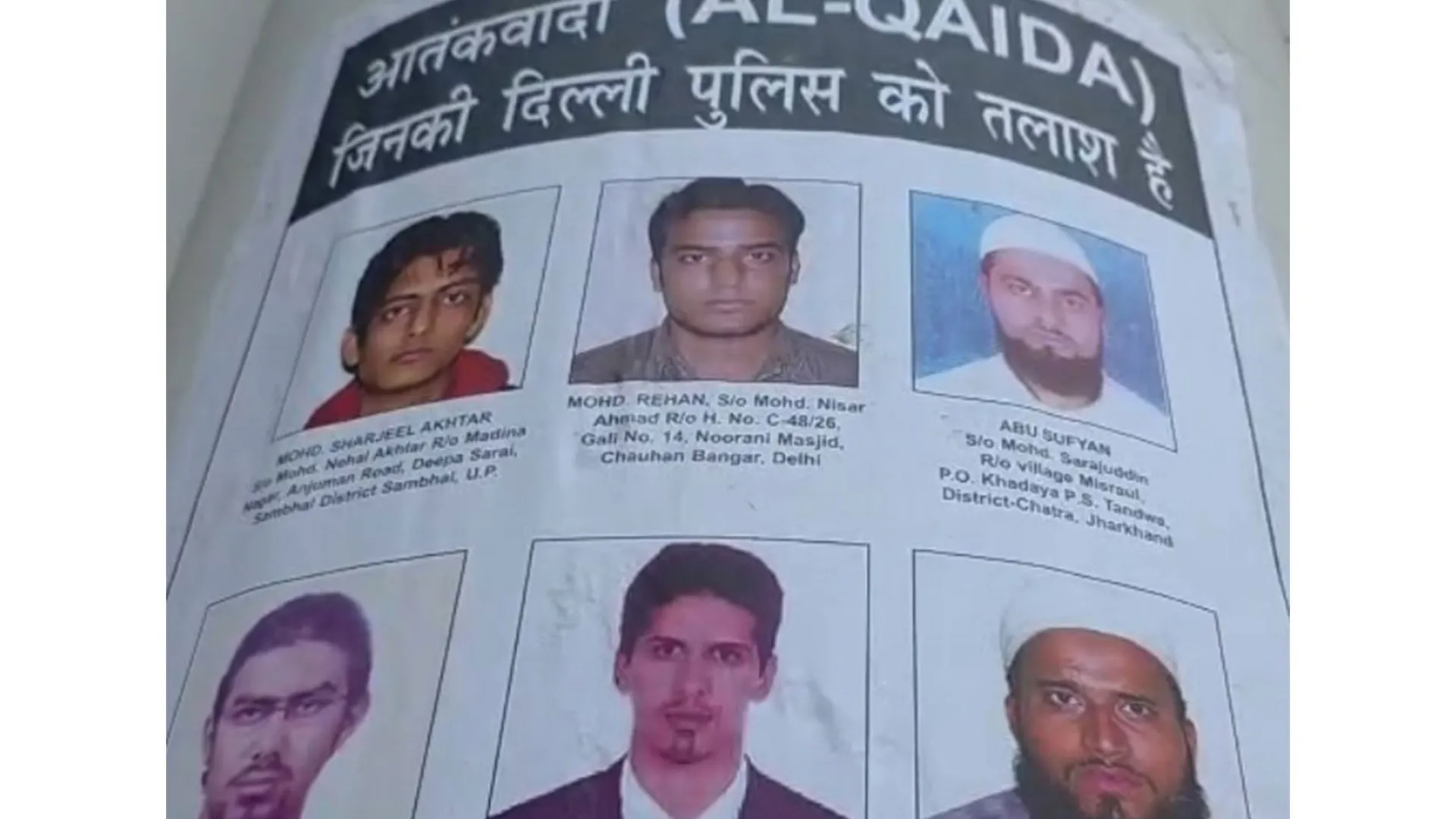 दिल्ली पुलिस ने छह आतंकवादियों के जारी किए पोस्टर।
