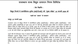 राजस्थान राज्य विद्युत उत्पादन नगर लिमिटेड की ओर से टेक्नीशियन मुख्य परीक्षा का आयोजन राजस्थान के विभिन्न परीक्षा केंद्रों में 23 फरवरी, 2026 को किया जाएगा। यह परीक्षा दो पालियों में आयोजित कराई जाएगी।