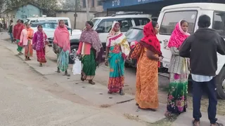 माओवादी बुलबुल आल्डा उर्फ डुबलू के शव को लेने के लिए तांतनगर के इलीगड़ा गांव से परिजन पहुंचे सदर अस्पताल। (जागरण)