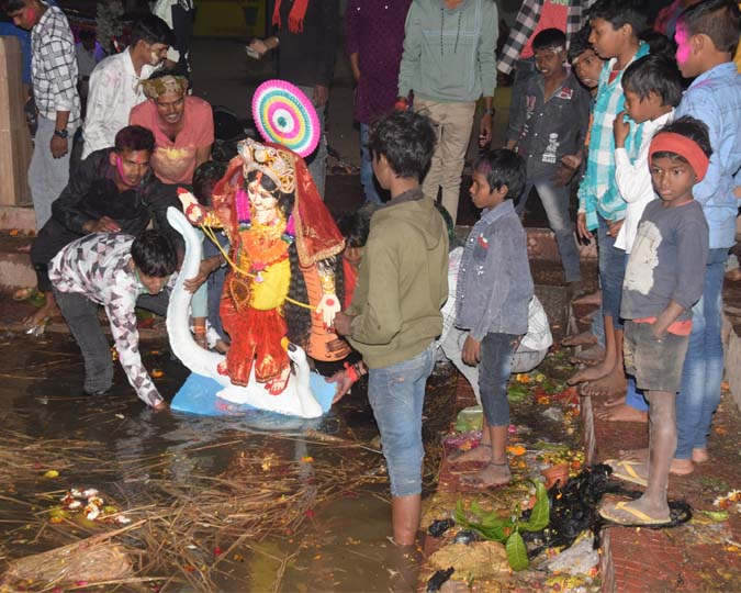 शहर के अधिकांश शिक्षण संस्थानों की प्रतिमाओं का विसर्जन शनिवार देर शाम तक कृत्रिम तालाब, गंगटी तालाब सहित अन्य निर्धारित स्थलों पर किया गया। स्टूडेंट क्लब मुंदीचक, एकता क्लब सहित अन्य संगठनों ने भावपूर्ण मां को विदाई दी।