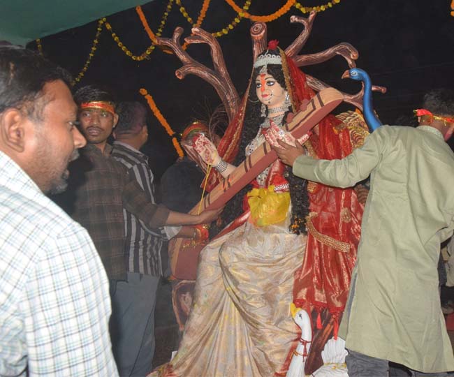 भागलपुर नौलक्‍खा कोठी के पास मेड‍िकल कॉलेज में स्‍थाप‍ित मां सरस्‍वती की प्रत‍िमा का व‍िसर्जन शन‍िवार को कर द‍िया गया। प्रत‍िमा का व‍िसर्जन मुसहरी घाट में कर द‍िया गया। कालेज के व‍िद्यार्थी, श‍िक्षक व च‍िक‍ित्‍सक ने मां सरस्‍वती को व‍िदाई दी। सभी ने जमकर वहां डांस क‍िया। काफी संख्‍या में  लोग प्रत‍िमा के साथ गंगा घाट पहुंचे, लेक‍िन जो नहीं गए वहीं कालेज में बने पक्‍की तालाब में कूदकर मस्‍ती की। इसमें लड़क‍ियों की संख्‍या ज्‍यादा थी। लड़कि‍यों ने एक-दूसरे को धक्‍का द‍िया और जलाशय में मस्‍ती की। यह स‍िलस‍िला एक घंटे से ज्‍यादा समय तक चलता रहा।