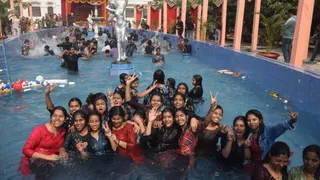 भागलपुर में मां सरस्‍वती प्रत‍िमा का हुआ व‍िसर्जन, इस दौरान मेड‍िकल कालेज की छात्राओं ने जलाशय में की मस्‍ती।