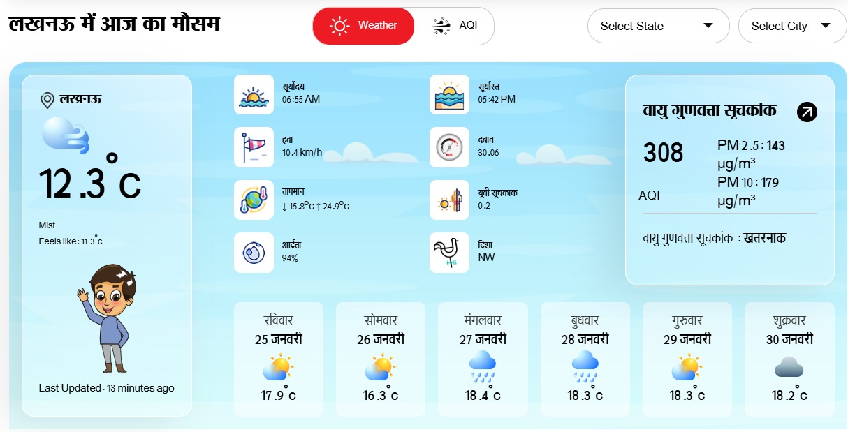 लखनऊ के आसपास के जिलों में मौसम का हाल