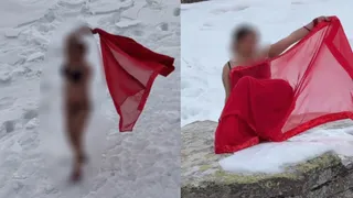 महिला का साड़ी उतारकर बर्फ में डांस करने का वीडियो वायरल।