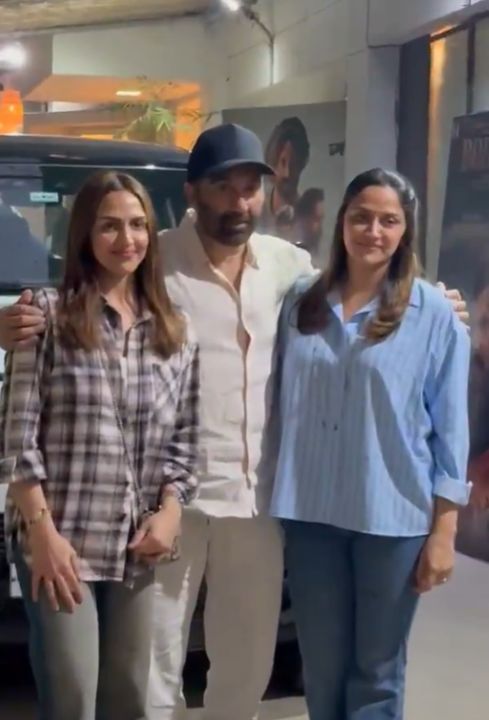 बॉर्डर 2 फिलम को लेकर एक्टर सनी देओल का नाम काफी सुर्खियां बटोर रहा है। अपने सौतेले बड़े भैया की फिल्म को देखने के लिए एशा देओल और अहाना देओल भी पहुंची हैं। इस दौरान इन दिनों सनी पाजी संग पोज भी दिए। इंस्टाग्राम हैंडल पर इनकी लेटेस्ट तस्वीरें और वीडियो सामने आए हैं। जिसमें सनी देओल अपनी सौतेली बहनों संग स्पॉट होते दिखाई दिए हैं।