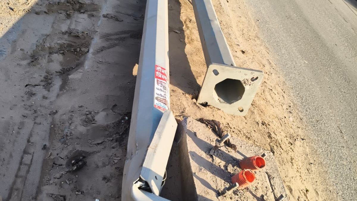 संवाद सहयोगी, फिरोजपुर झिरका। नगरपालिका प्रशासन द्वारा गुरुग्राम-अलवर राजमार्ग पर बने डिवाइडर पर हाईमास्क लाइटों को लगवाने के लिए लगवाए गए खंभों को लाइटों के लगने एवं शुरु होने से पूर्व ही वाहन चालकों द्वारा तोड़ा जा रहा है।