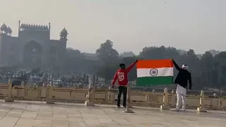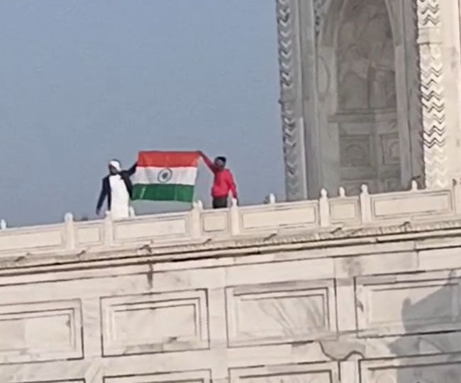गणतंत्र दिवस पर ताजमहल में फहराया तिरंगा। वीडियो से ली तस्वीर।