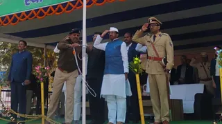गणतंत्र दिवस 2026 : बांका के आरएमके मैदान में तिरंगा को सलामी देते जिले के प्रभारी मंत्री संजय सिंह टाइगर।