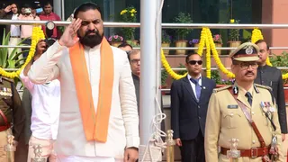 सरदार पटेल भवन में तिरंगे को सलामी देते डिप्‍टी सीएम सम्राट चौधरी, साथ में डीजीपी व‍िनय कुमार। सौ-एक्‍स