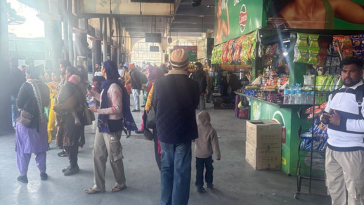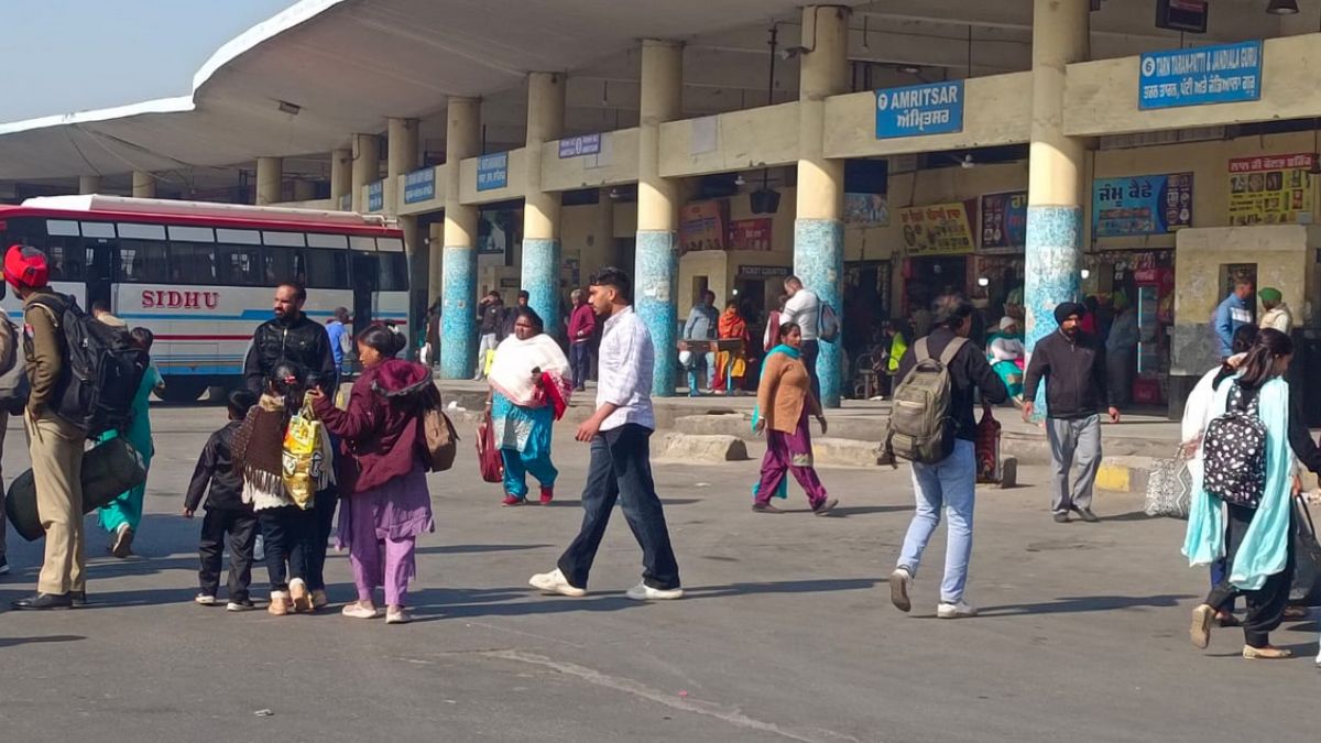 अमृतसर बस स्टैंड पर बसों का इंतजार कर रहे लोग।