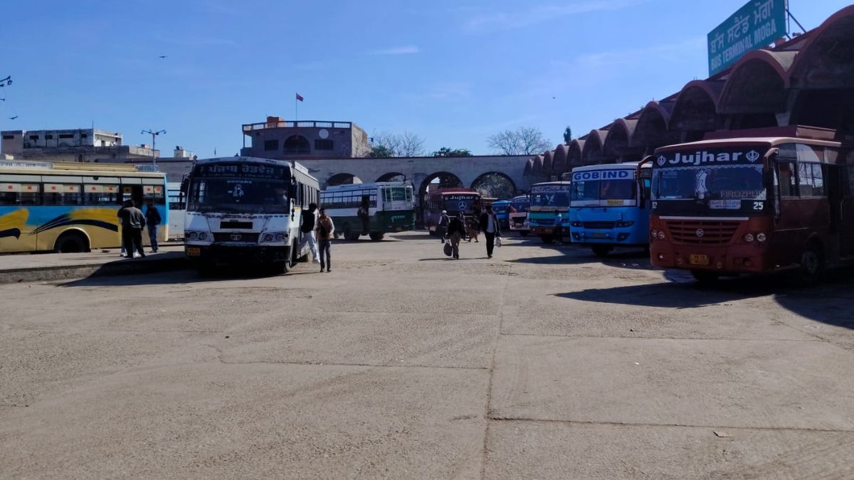 मोगा बस स्टैंड पर बसों का इंतजार कर रहे लोग।
