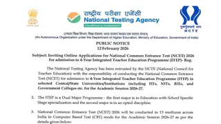 एजुकेशन डेस्क, नई दिल्ली। राष्ट्रीय परीक्षण एजेंसी (NTA) की ओर से नेशनल कॉमन एंट्रेस टेस्ट (NCET) के जरिये चार वर्षीय इंटीग्रेटेड टीचर एजुकेशन प्रोग्राम (ITEP) में दाखिला लेने के लिए ऑनलाइन आवेदन प्रक्रिया आज यानी 12 फरवरी से शुरू हो गई है। जो उम्मीदवार सेंट्रल, स्टेट यूनिवर्सिटी, आईआईटी जैसे प्रतिष्ठित में यूनिवर्सिटी में दाखिला लेना चाहते हैं। वे उम्मीदवार इस प्रवेश परीक्षा के लिए ऑनलाइन माध्यम में आवेदन कर सकते हैं। आवेदन करने की अंतिम तिथि 10 मार्च, 2026 निर्धारित की गई है।