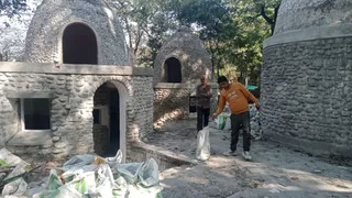 स्वर्गाश्रम स्थित चौरासी कुटिया में चल रहा निर्माण कार्य