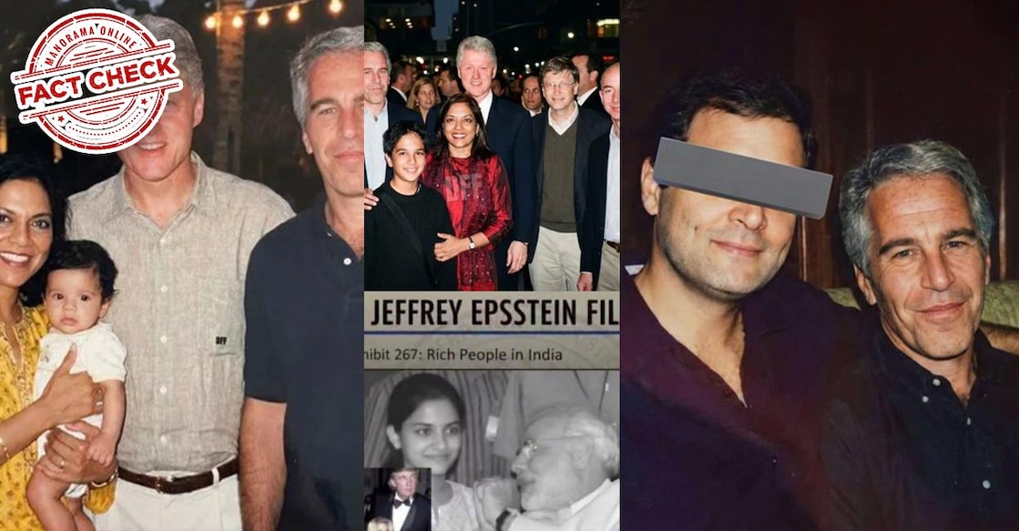 03. എപ്സ്റ്റീൻ ഫയൽസുമായി ബന്ധപ്പെടുത്തി രാഹുൽ ഗാന്ധിയുടെയും ചിത്രങ്ങൾ വൈറലാകുന്നുണ്ട്. എപസ്റ്റീനൊപ്പം രാഹുൽ ഇരിക്കുന്നതിന്റെയും മറ്റൊരു സ്ത്രീയോടൊപ്പം ഇരുവരും നിൽക്കുന്നതിന്റെയും ഒരു ചിത്രമാണ് സമൂഹമാധ്യമങ്ങളിൽ പ്രചരിക്കുന്നത്. എന്നാൽ, രാഹുലിന്റെ പേര് എപ്സ്റ്റീൻ ഫയൽസുമായി ബന്ധപ്പെടുത്തി ഇതുവരെ പരാമർശിക്കപ്പെട്ടിട്ടില്ല.